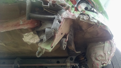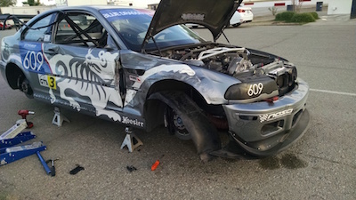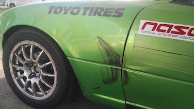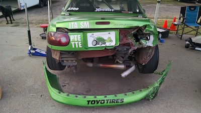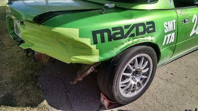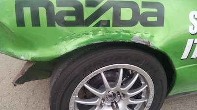 The car seemed OK, so I continued the race, and finished. When I got into impound (all cars are impounded after a championship race), I saw the extent of the damage.